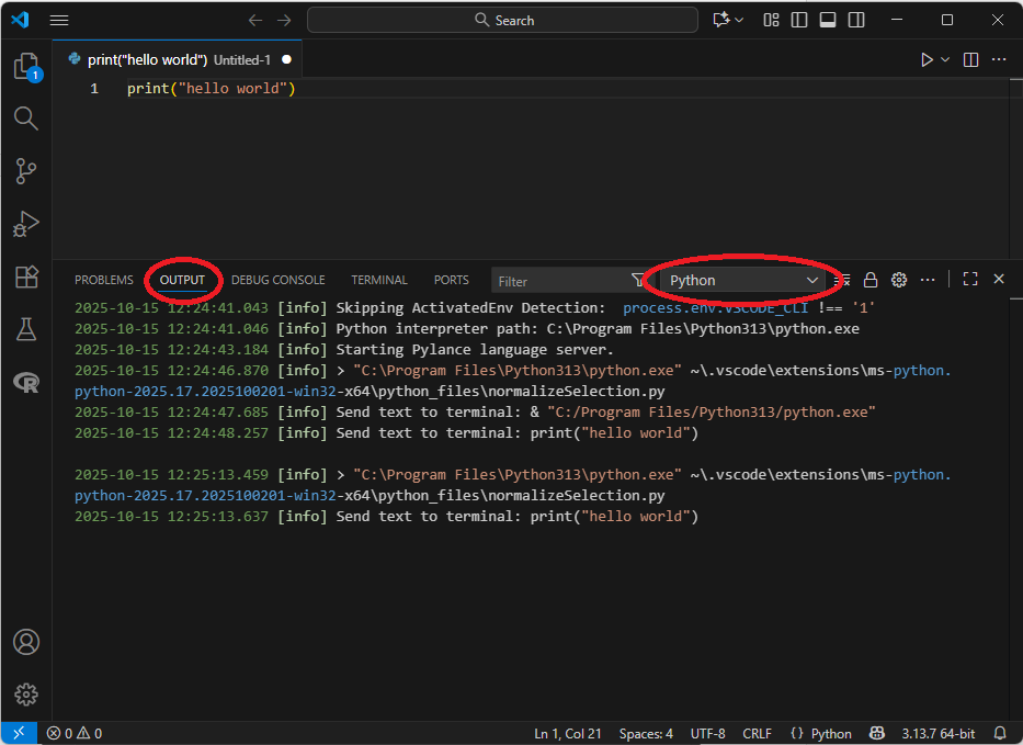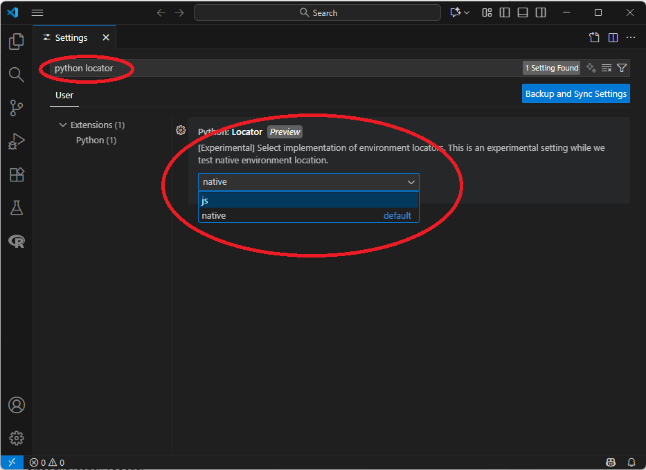 If a message appears in the bottom-left corner with something about setting up virtual environments or detecting interpreters, try disabling the “Python Environments” extension.